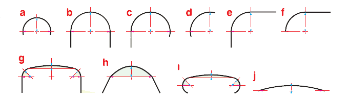 - Detayınız aşağıdaki eğrisel büküm tiplerinden hangisine uyduğunu belirtip, her tipte ayrı renklerde gösterilen oklar arası mesafeleri ölçerek EĞRİSEL BÜKÜM İÇİN GEREKLİ TEKNİK BİLGİLER TABLOSU’nu eksiksiz doldurunuz.